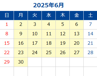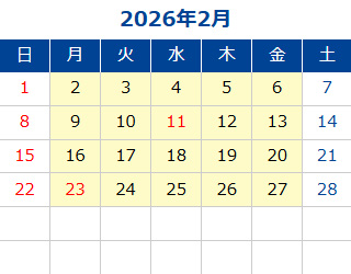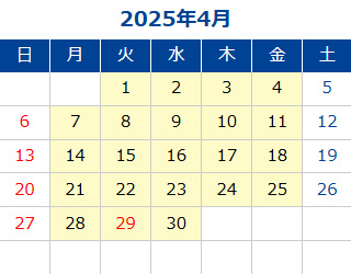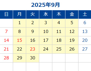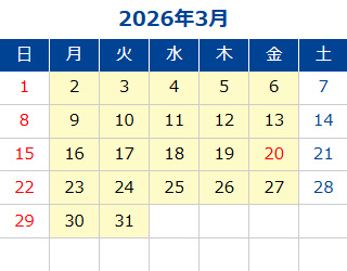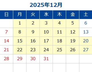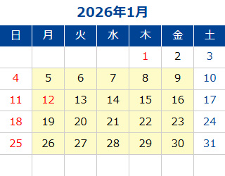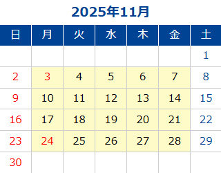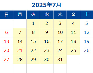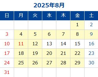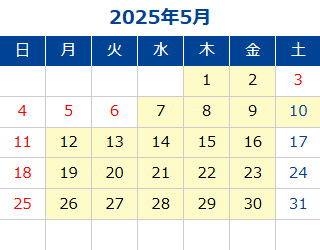黄色部分が営業日です